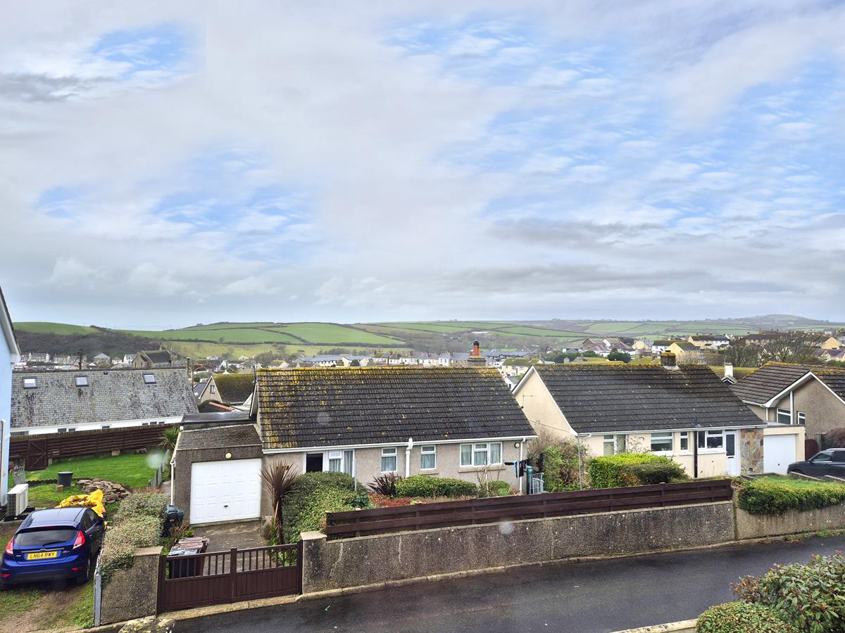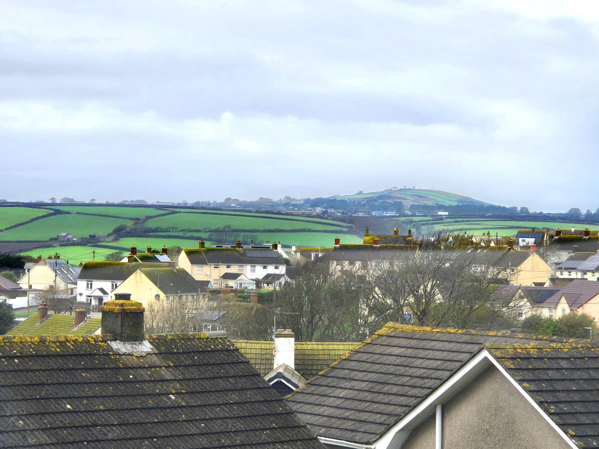 With an outlook to the side and over properties to open countryside and towards Tregonning Hill.
