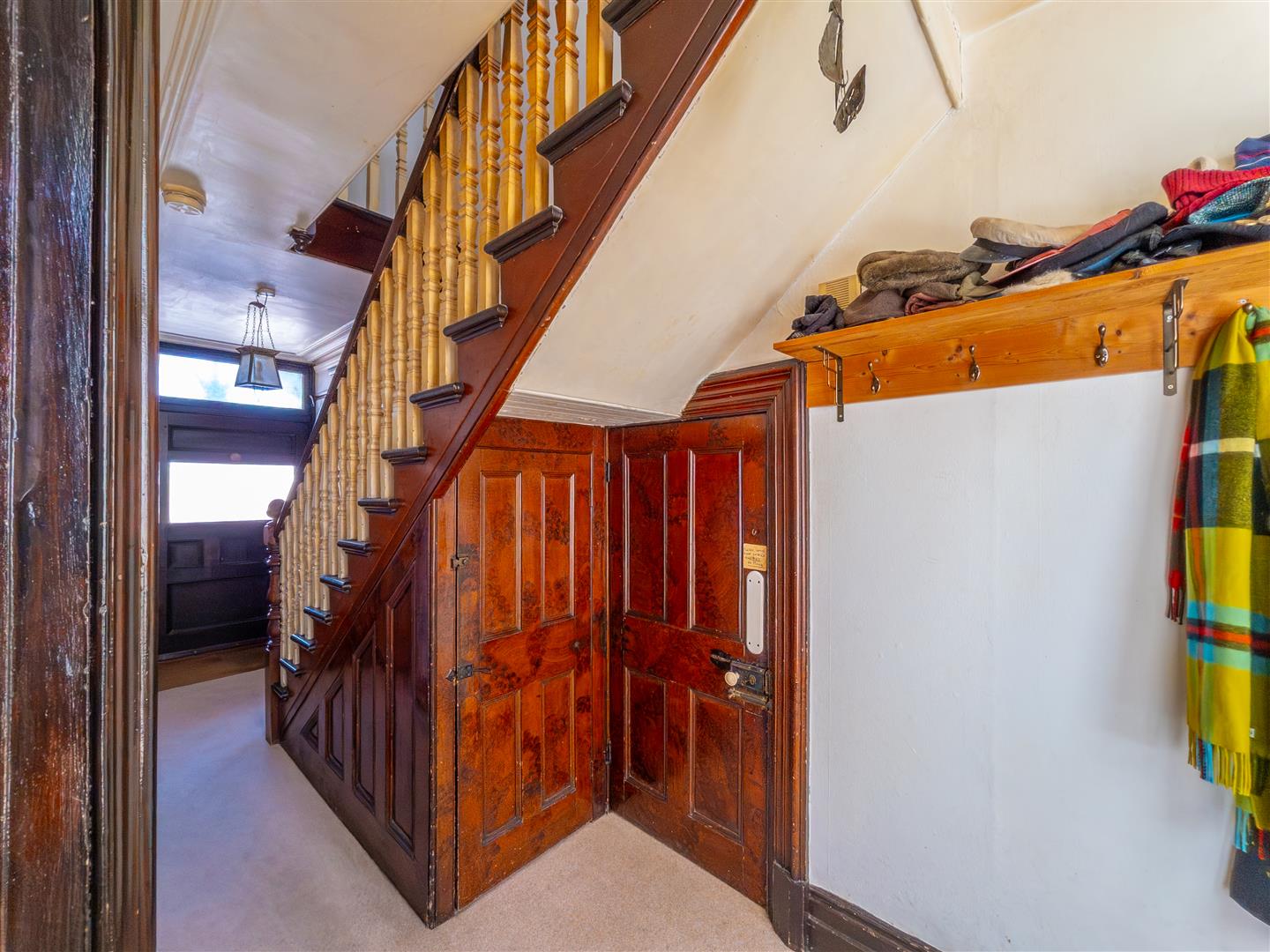 With coat hanging rail with shelving above, opening to staircase to first floor, door to understairs storage cupboard and doors off to dining room, sitting room, side entrance and breakfast room. Obscure glazed door with frosted side panel to rear courtyard.