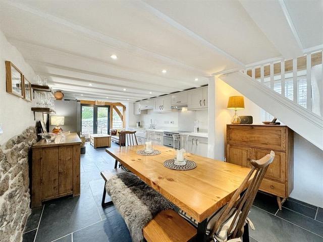 Tastefully enhanced during our owners tenure the semi-detached cottage has firmly retained its soul, with a wealth of character features including a striking feature fireplace, beamed ceilings, slate flooring and authentic exposed stone work. These are seamlessly complemented by a stylish, contemporary, open plan living space with underfloor heating and a stunning sun room with oak beams, a vaulted ceiling and doors opening out invitingly into a sheltered patio area - perfect for morning coffee or an ‘al fresco’ lunch.