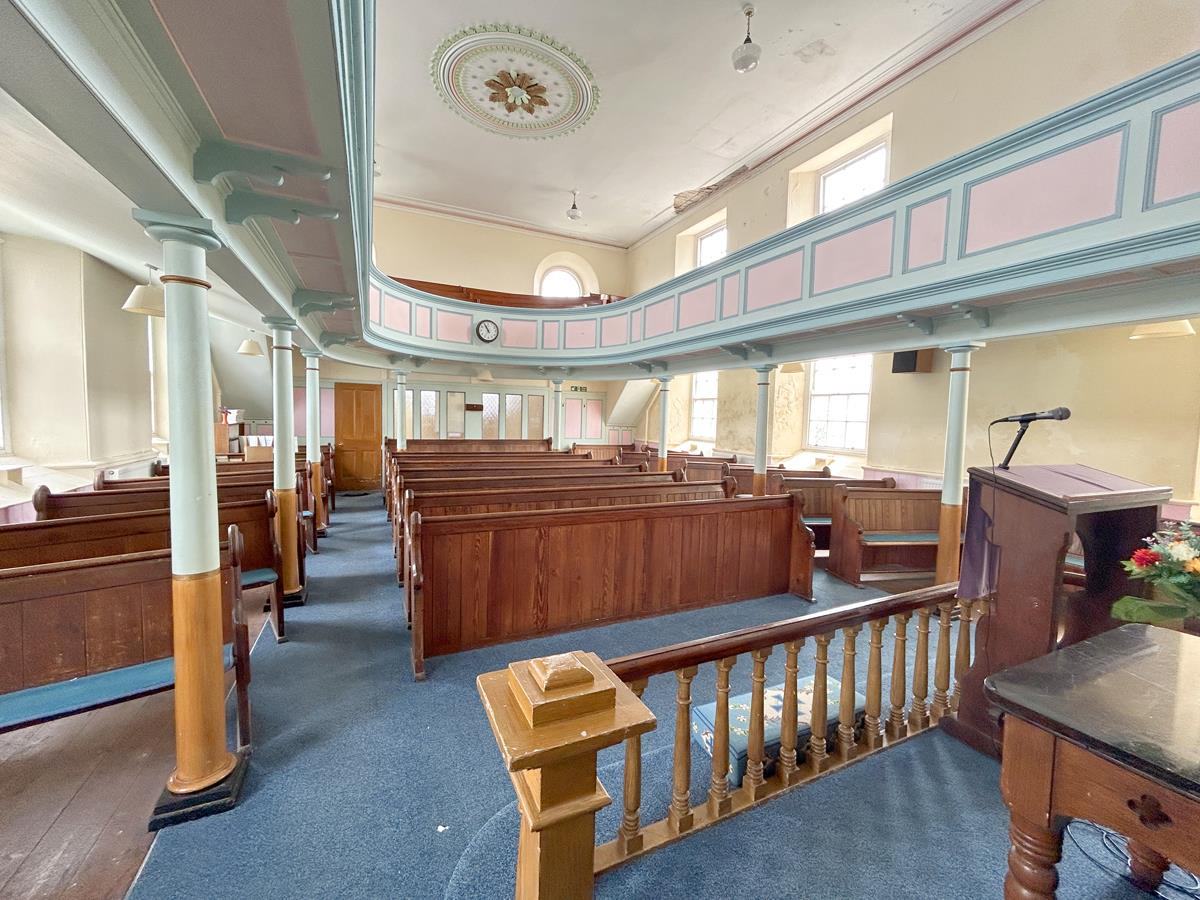 From the entrance vestibule one can ascend either staircase to the gallery area which has twelve sash windows to both side aspects. From some of the window there are views over open countryside to the sea over Lloyds Signal House and the lighthouse. There is also an impressive organ.