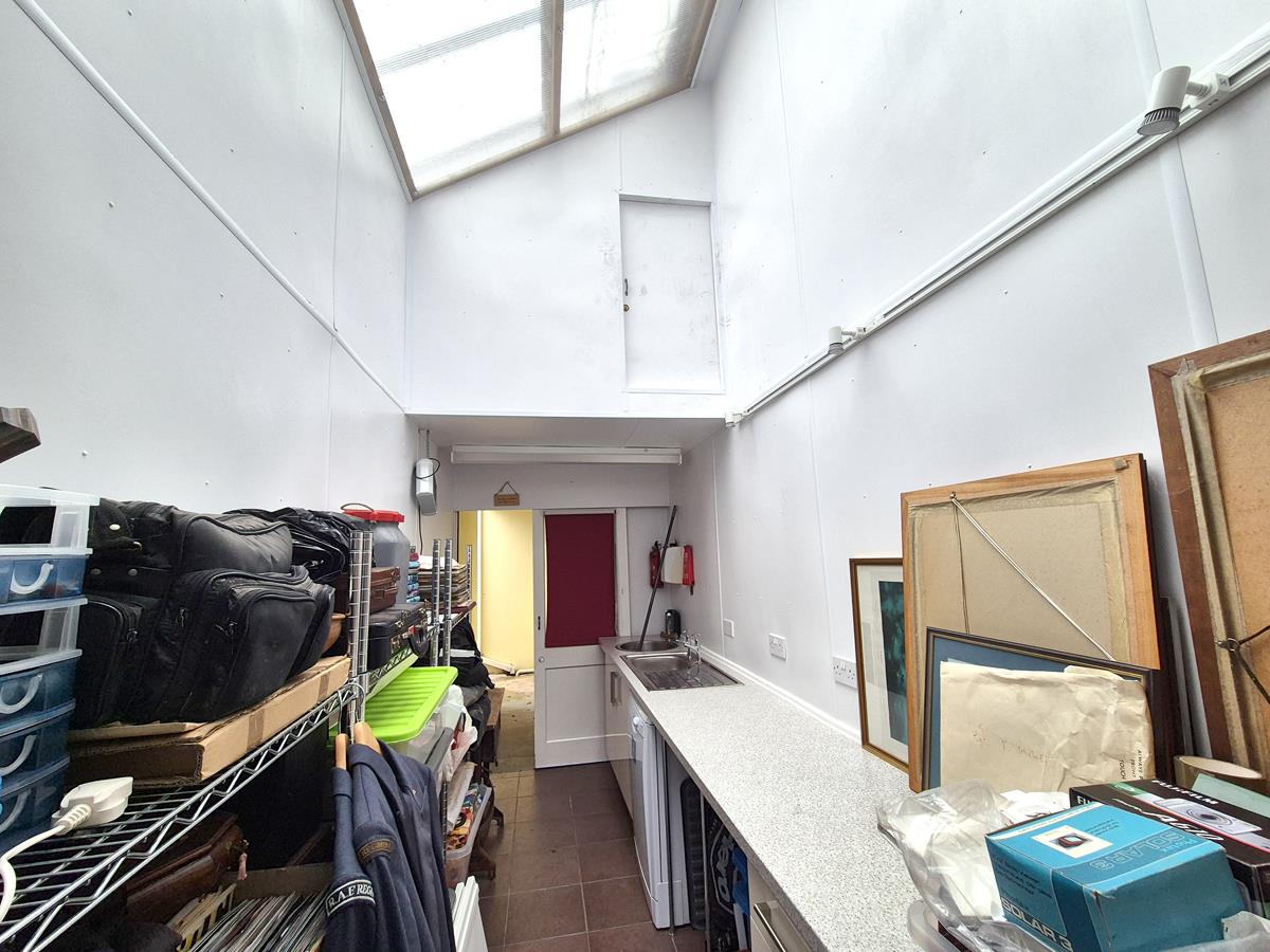 Accessed from the outside of the property. A galley utility space comprising working top surfaces incorporating a sink unit with drainer and a separate unit with mixer tap over, cupboards and drawers under and space for utilities. Tiled floor and skylight.