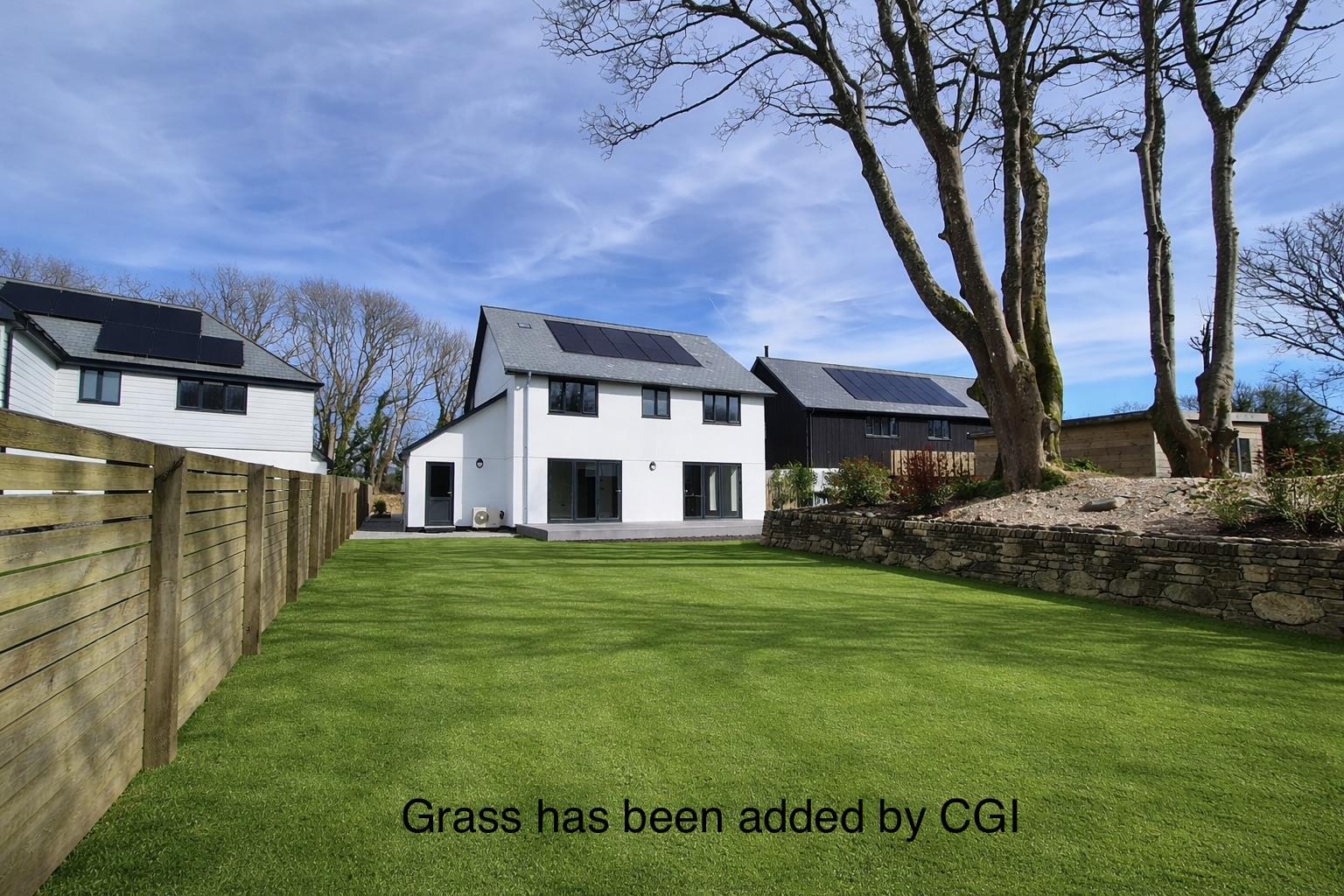 To the front of the property a newly constructed granite Cornish stone wall. To the front of the garage and the porch are motion sensor lights whilst the terrace to the rear also has a light.