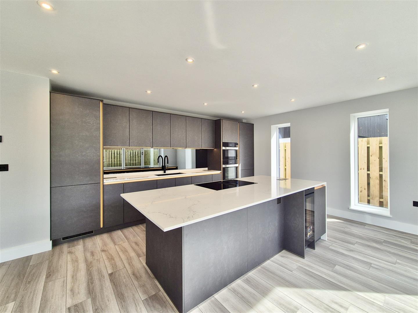 A truly impressive space being dual aspect with two vertical windows to the side and two sets of bifold doors to the rear offering access to the deck and rear garden. Fitted with a T.V point and finished with black sockets and light switches The absolute heart of the home whether you are a busy family or a couple that love to entertain this space is wonderfully light and versatile.